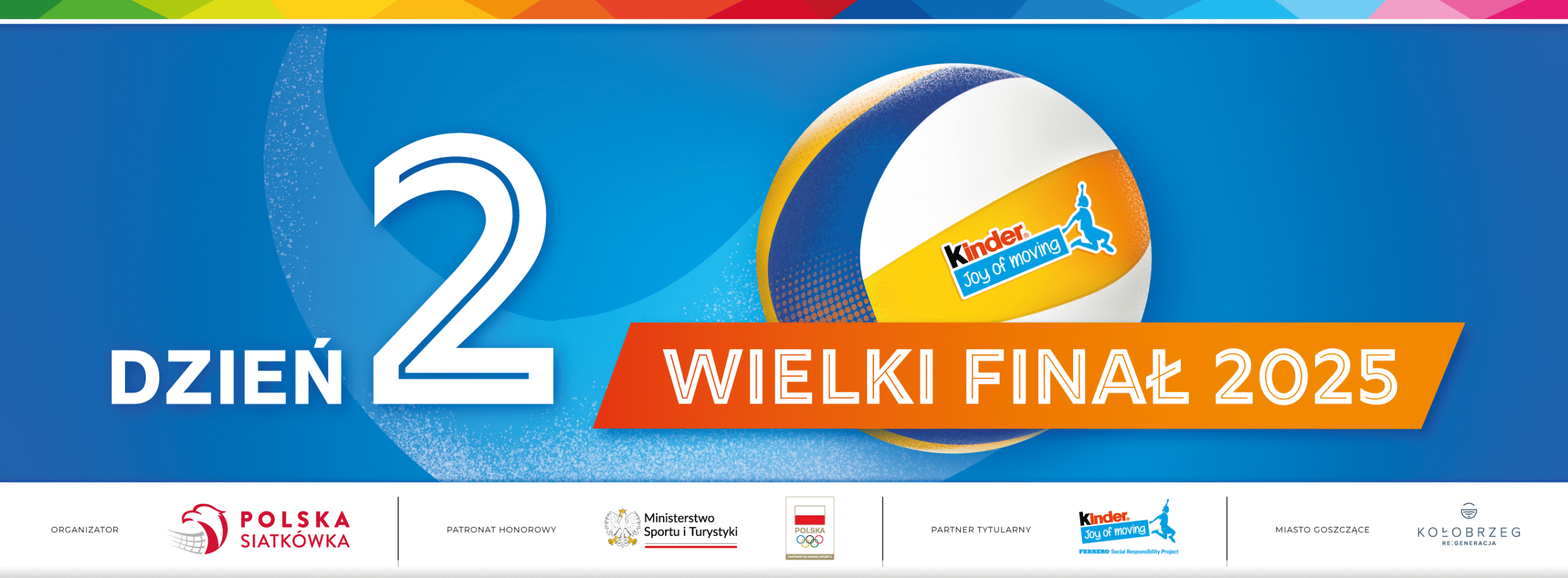 Wtorek 8 lipca 2025 roku na plaży Milenium w Kołobrzegu to drugi dzień rozgrywania 3. Wielkiego Finału Ogólnopolskich Mistrzostw w Minisiatkówce Plażowej o Puchar KINDER Joy of moving. W finale centralnym bierze udział 259 par, które rywalizują w kategorii U-12, U-13, U-14 dziewcząt i chłopców.