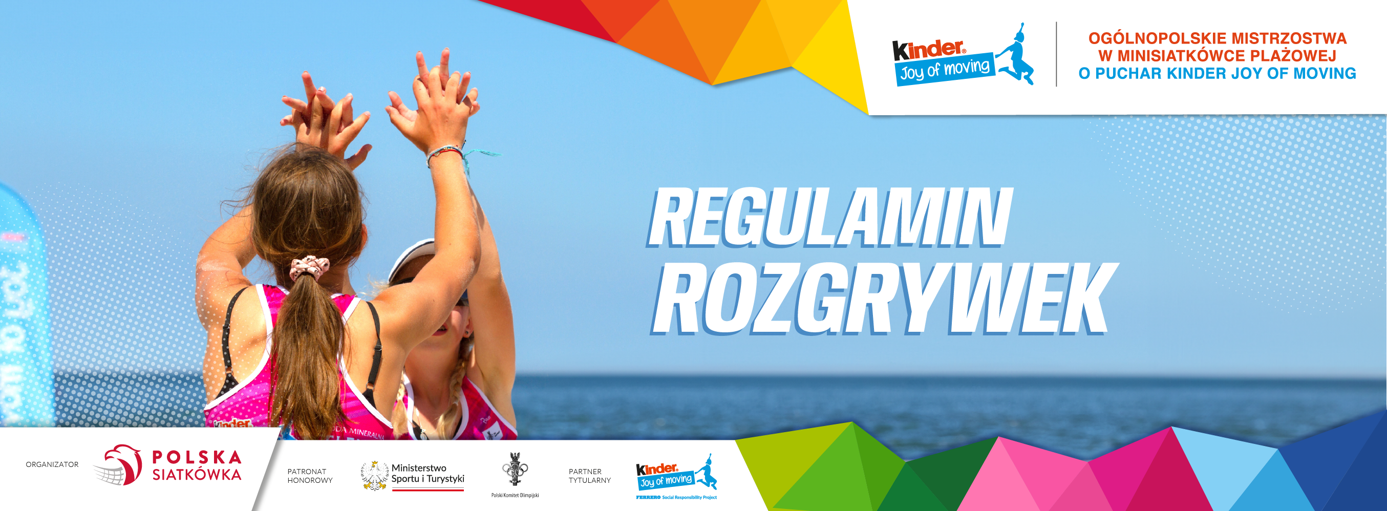 Przypomnijmy, że główną ideą Ogólnopolskich Mistrzostw w Minisiatkówce Plażowej o Puchar KINDER Joy of moving poza zdobywaniem doświadczenia siatkarskiego przez młodych adeptów siatkówki, jest przede wszystkim promocja aktywnego stylu życia wśród najmłodszych, ale i nauka uniwersalnych wartości sportu przez wspólną zabawę! Ogólnopolskie Mistrzostwa w Minisiatkówce Plażowej o Puchar KINDER Joy of moving organizowane są przez Polski Związek Piłki Siatkowej pod honorowym patronatem Ministerstwa Sportu i Turystyki oraz Polskiego Komitetu Olimpijskiego.