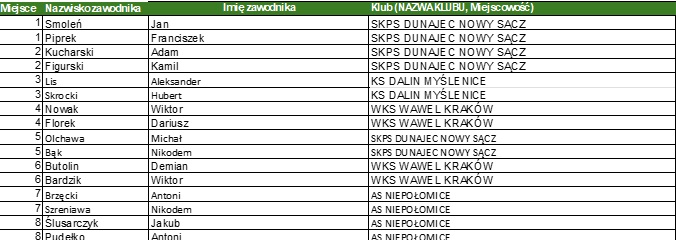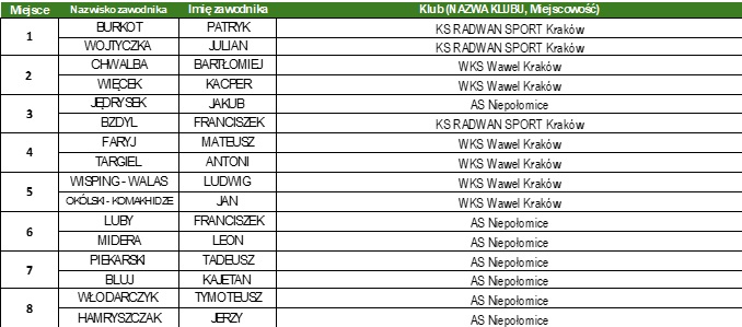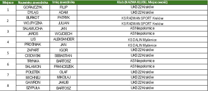Klasyfikacja końcowa Finałów Wojewódzkich w woj. małopolskim